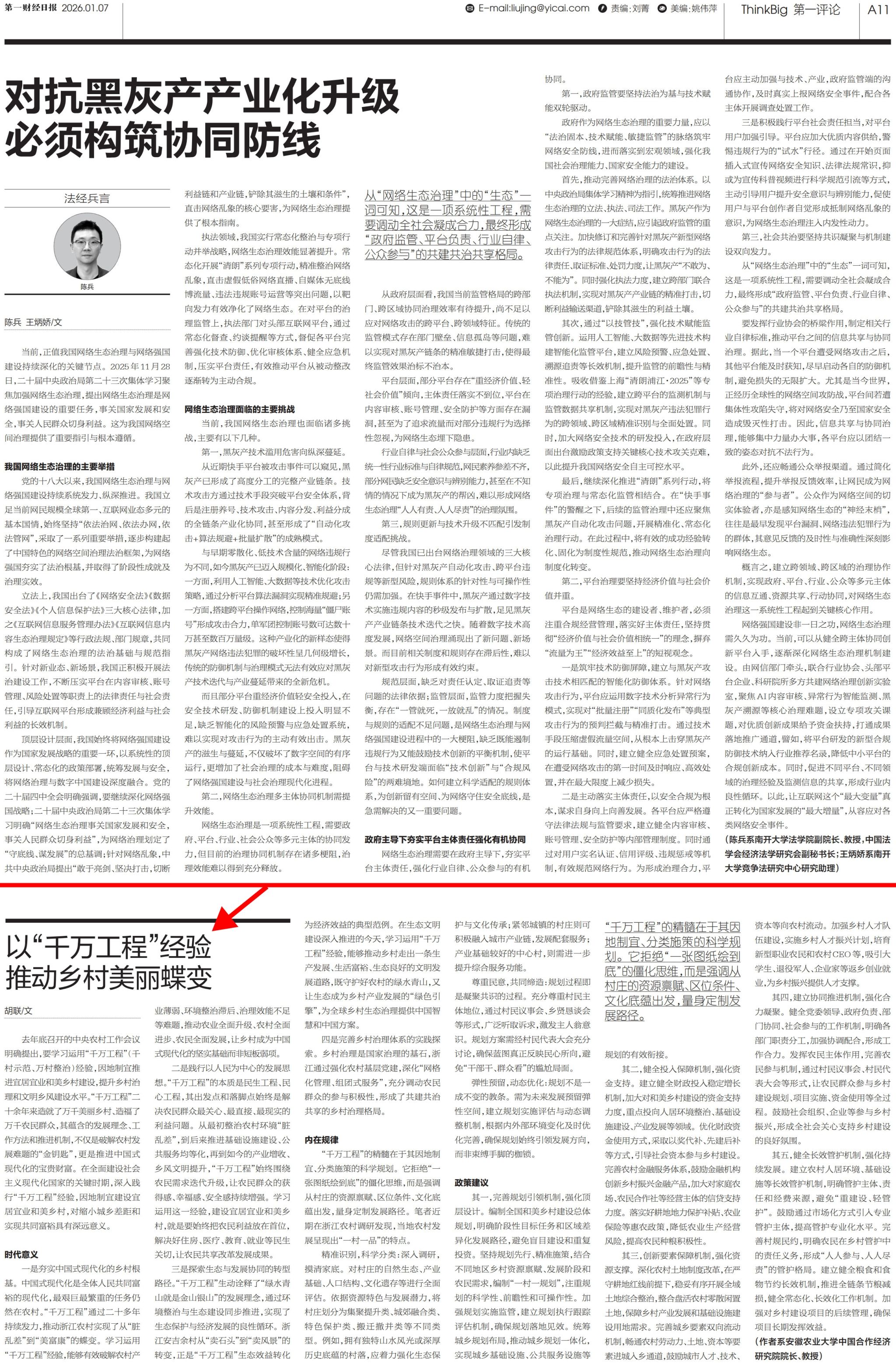 本网讯 1月7日,胡联教授在《第一财经》发表评论论文以“千万工程”经验推动乡村美丽蝶变。文章指出,学习运用“千万工程”经验的内在规律在于:1.精准识别,科学分类;2.尊重民意,共同缔造;3.弹性预留,动态优化。学习运用“千万工程”经验的政策建议:1.完善规划引领机制,强化顶层设计;2.健全投入保障机制,强化资金支持;3.创新要素保障机制,强化资源支撑;4.建立协同推进机制,强化合力凝聚;5.健全长效管护机制,强化持续发展。